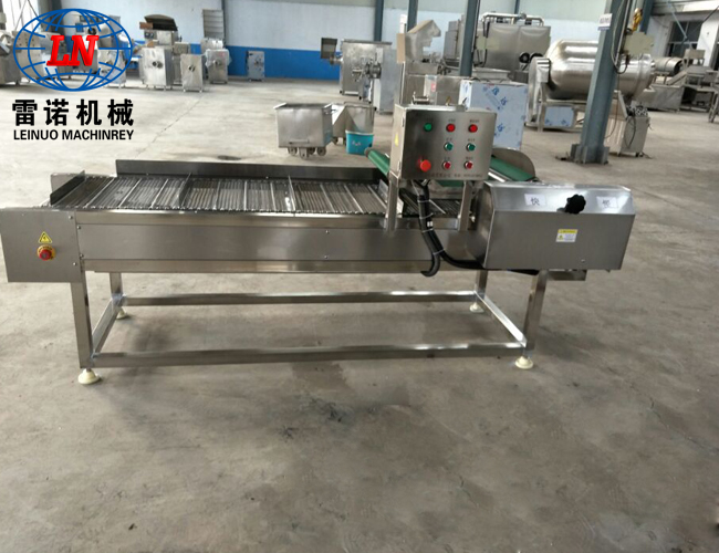 該流水線主要由清洗段、提升輸送段、震動瀝水段以及風(fēng)干除水段組成,主要用于袋裝食品的高低溫殺菌后,產(chǎn)品表面油污、油漬的連續(xù)清洗及風(fēng)干。
